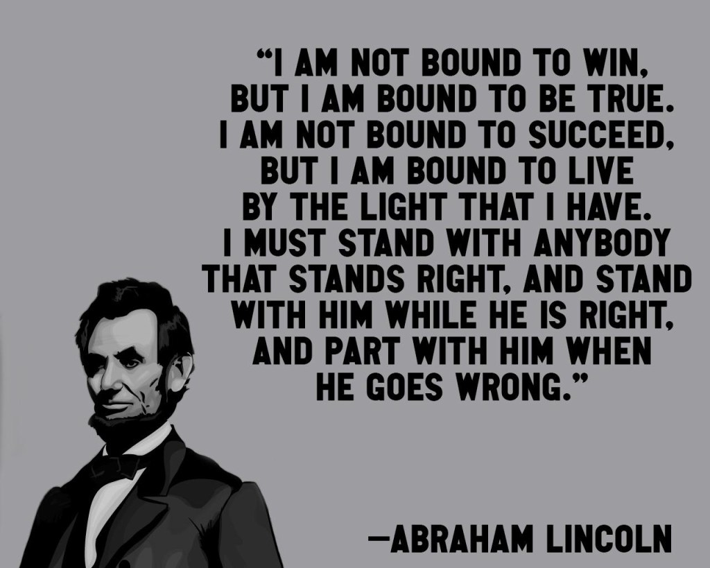 Stand with anybody that stands RIGHT. Stand with him while he is right and PART with him when he goes wrong. Abraham Lincoln