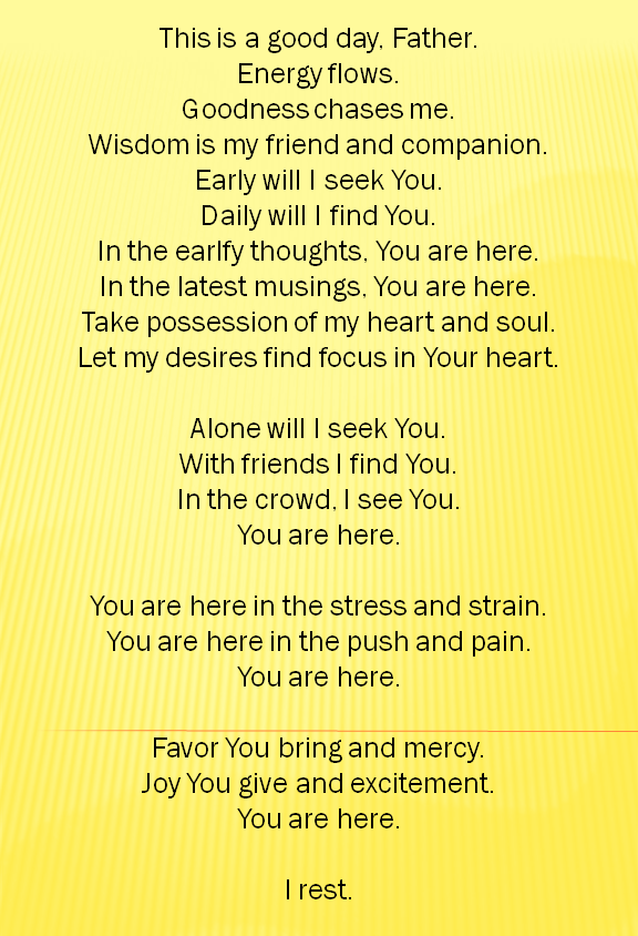 There it is in a short, sweet nutshell. If it builds that, then that is what I do. If one more family moves in that direction, my target will be achieved. I hear my Father say, “Well done good and faithful servant. Enter into your Master’s joy.” Every day that I work on the target that affirmation of my Father is mine. If I am doing something that isn’t working to achieve that target, then I need to part with it as soon as I see that it goes wrong. Good counsel, Abe.
